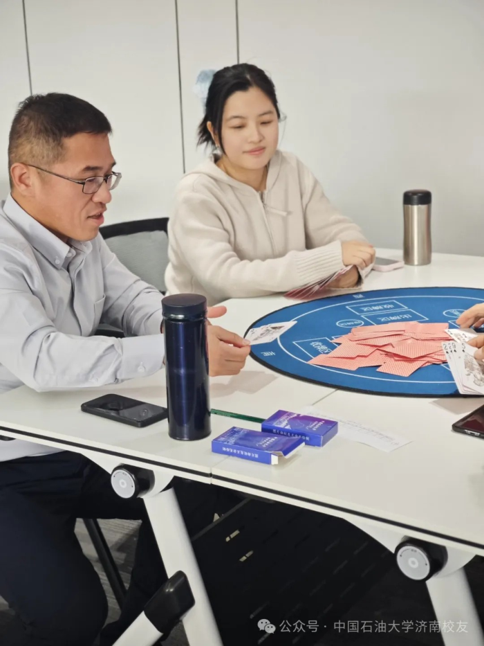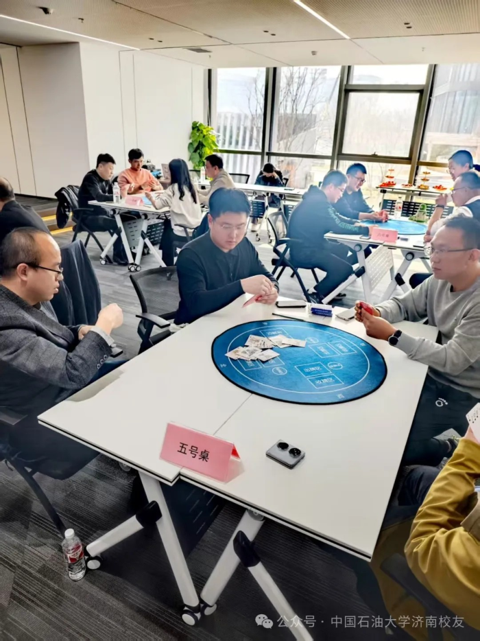 春水初生,燕語呢喃。2025年3月9日下午,“石大情,摜軍夢”第一屆中國石油大學濟南校友會摜蛋聯誼賽在濟高校友會客廳鳴鑼開戰。這場醞釀已久的智慧盛宴,2024年初便埋下伏筆:校友棋牌交流群星火燎原;2025年新春更見匠心:以校友鋼筆畫作品為圖案的定制牌具驚艷亮相,將石油人的藝術情懷鐫刻于方寸之間。