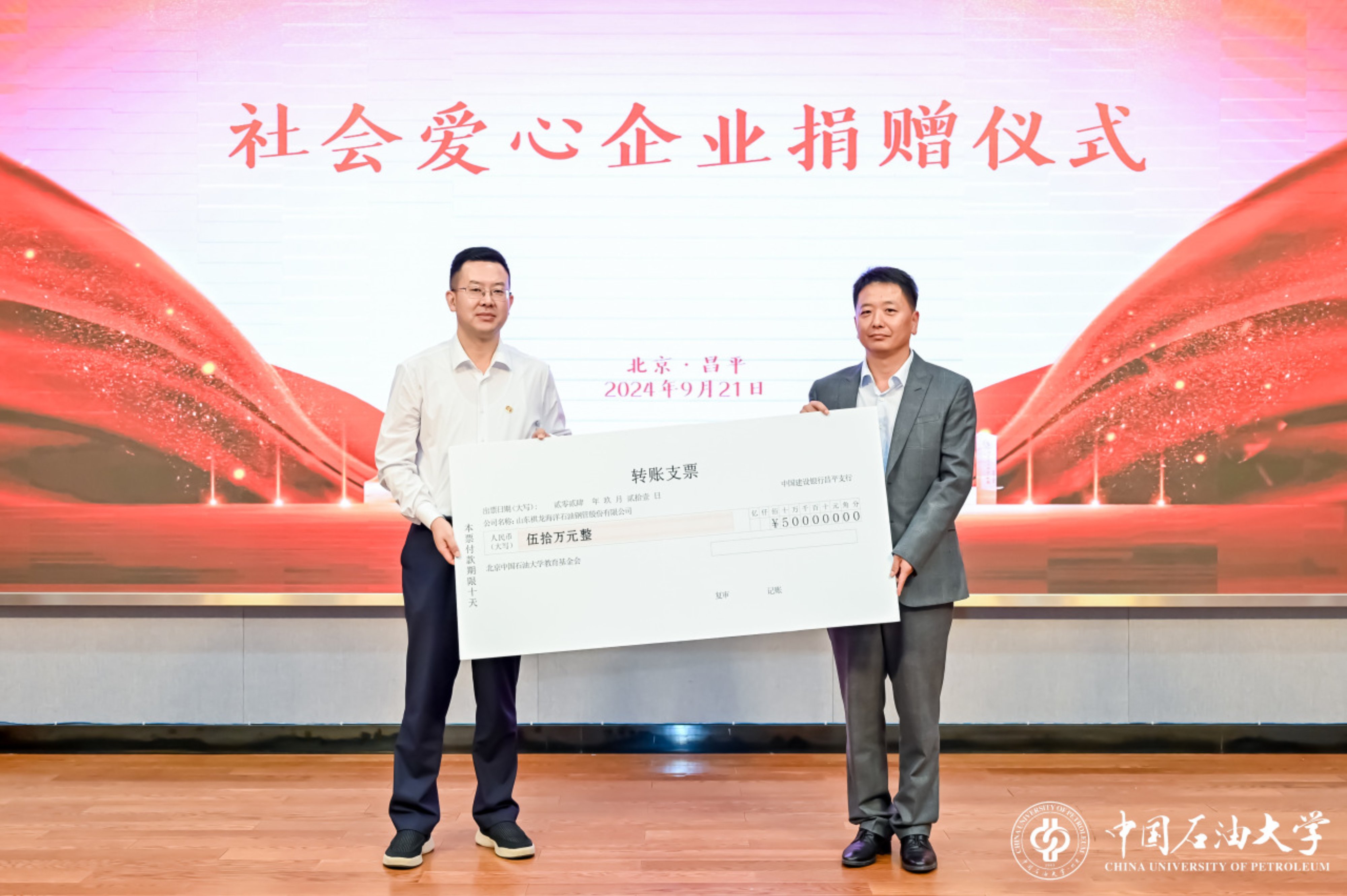 會上,北京德美高科科技股份有限公司董事長張德斌、山東祺龍海洋石油鋼管股份有限公司總經理孟慶濱分別代表兩家愛心企業,為學校捐贈100萬元、50萬元。文永紅代表北京中國石油大學教育基金會接受捐贈并頒發捐贈證書。