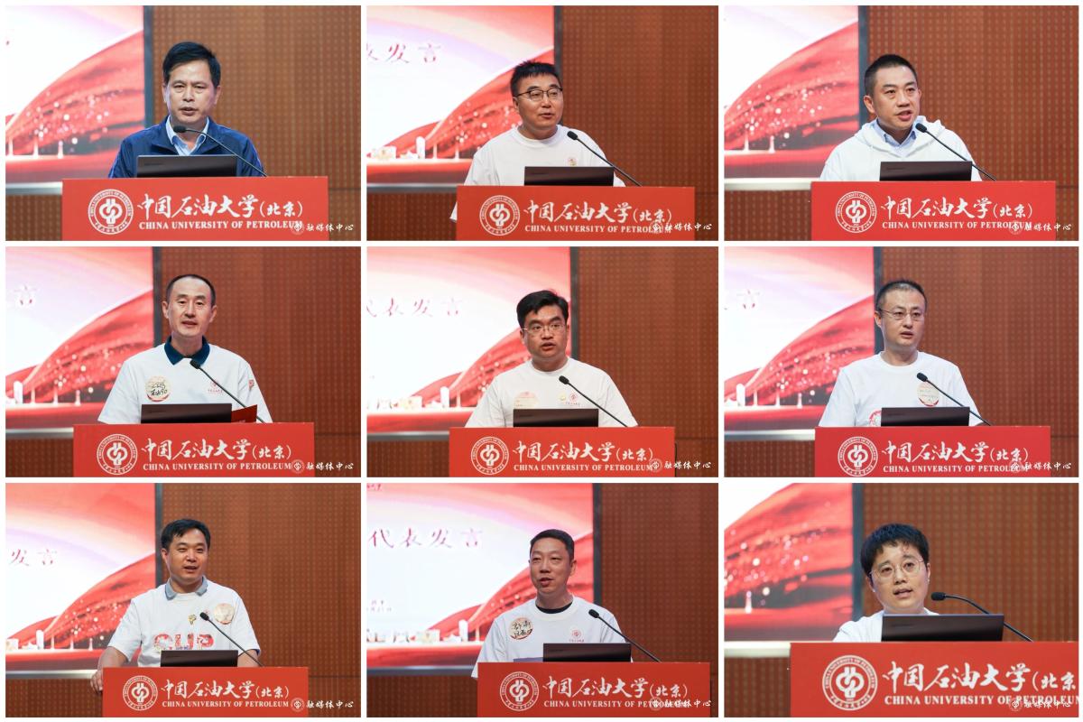 地質工程1994屆校友門相勇、石油工程1994屆校友王京博、機械工程1994屆校友王大偉、地質工程2004屆校友江青春、化學工程2004屆校友公磊、機械工程2004屆校友郭濤、電子信息2004屆校友張瑋、國際貿易2004屆校友李世群、英語2004屆校友石娟,分別代表畢業30周年、20周年的校友上臺發言。他們回顧了在母校求學生活的時光,感恩母校和老師對自己的關愛和培養,為母校近年來取得的辦學成就感到自豪。他們表示,將會始終傳承發揚母?!皩嵤虑笫恰⑵D苦奮斗”的優良傳統,在各自崗位為強國建設和民族復興貢獻力量,并祝愿母校宏圖更展、再譜華章,早日建成能源領域特色鮮明的世界一流研究型大學。