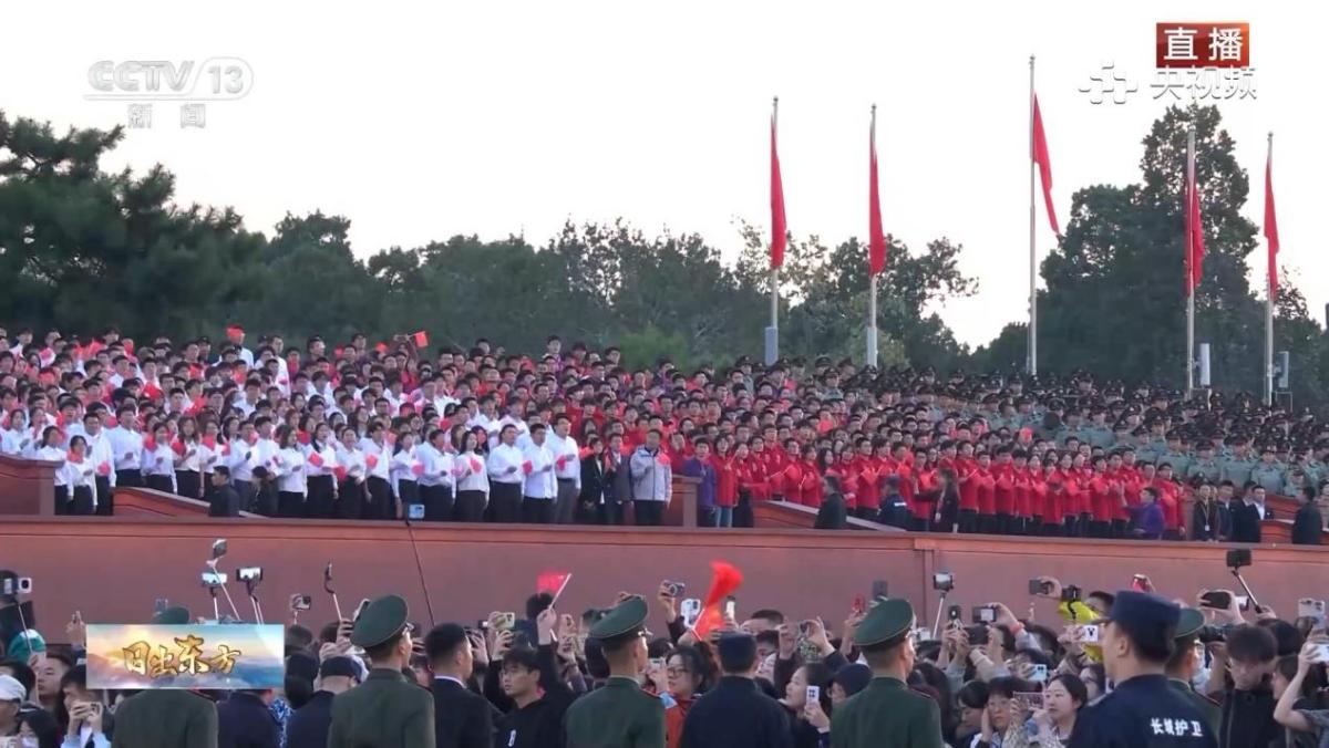 凌晨5時,師生代表在天安門東側觀禮臺有序集結、整齊站定,懷著對祖國的崇高敬意等待儀式開始。6時11分,升旗儀式正式開始,全體師生肅立注目,高唱《義勇軍進行曲》,見證國旗冉冉升起。升旗儀式結束后,現場師生共同唱響《歌唱祖國》,悠揚歌聲中滿含對祖國的深情祝福。
