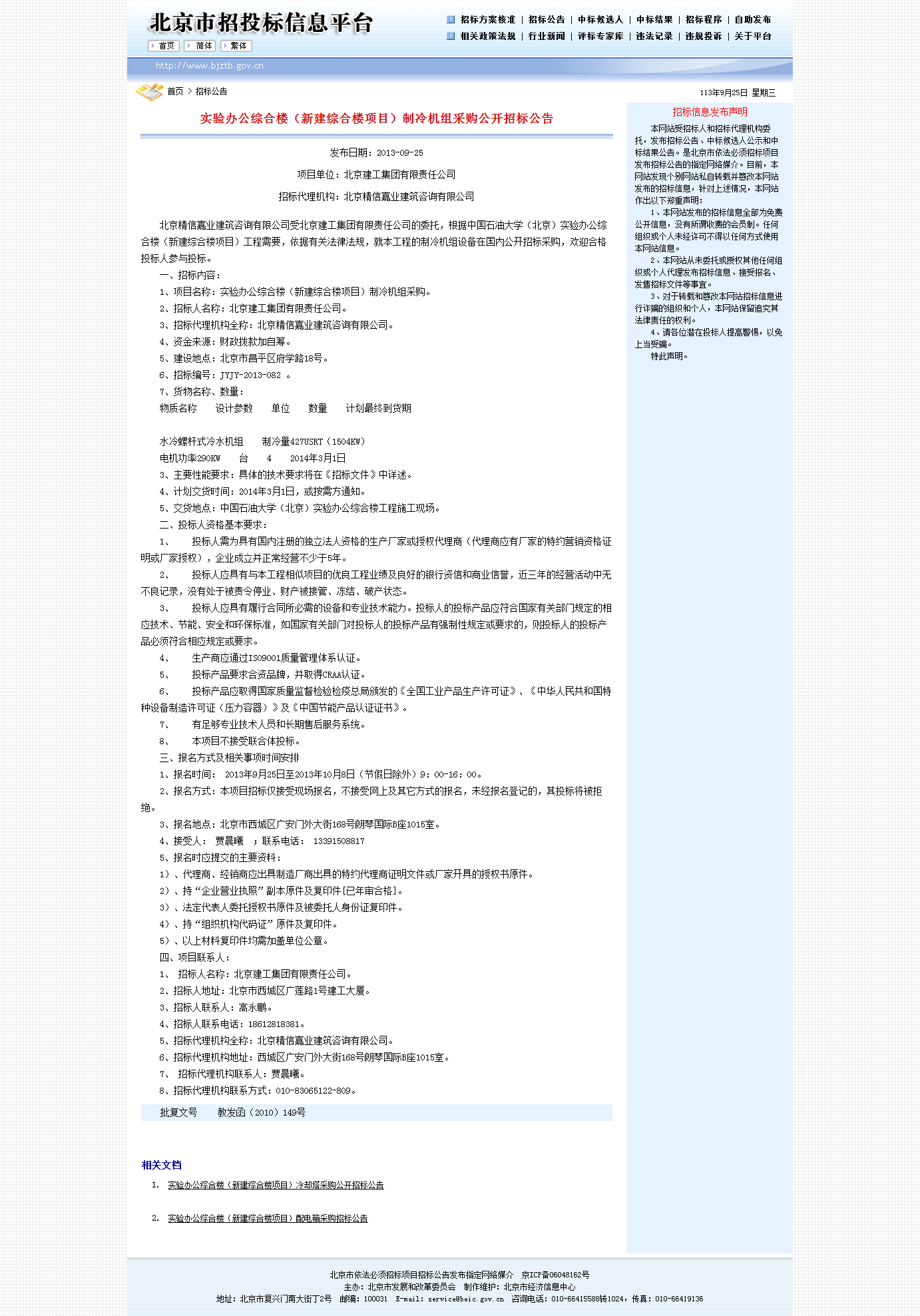 ( http://www.bjztb.gov.cn/zbgg/201309/t6768236.htm)