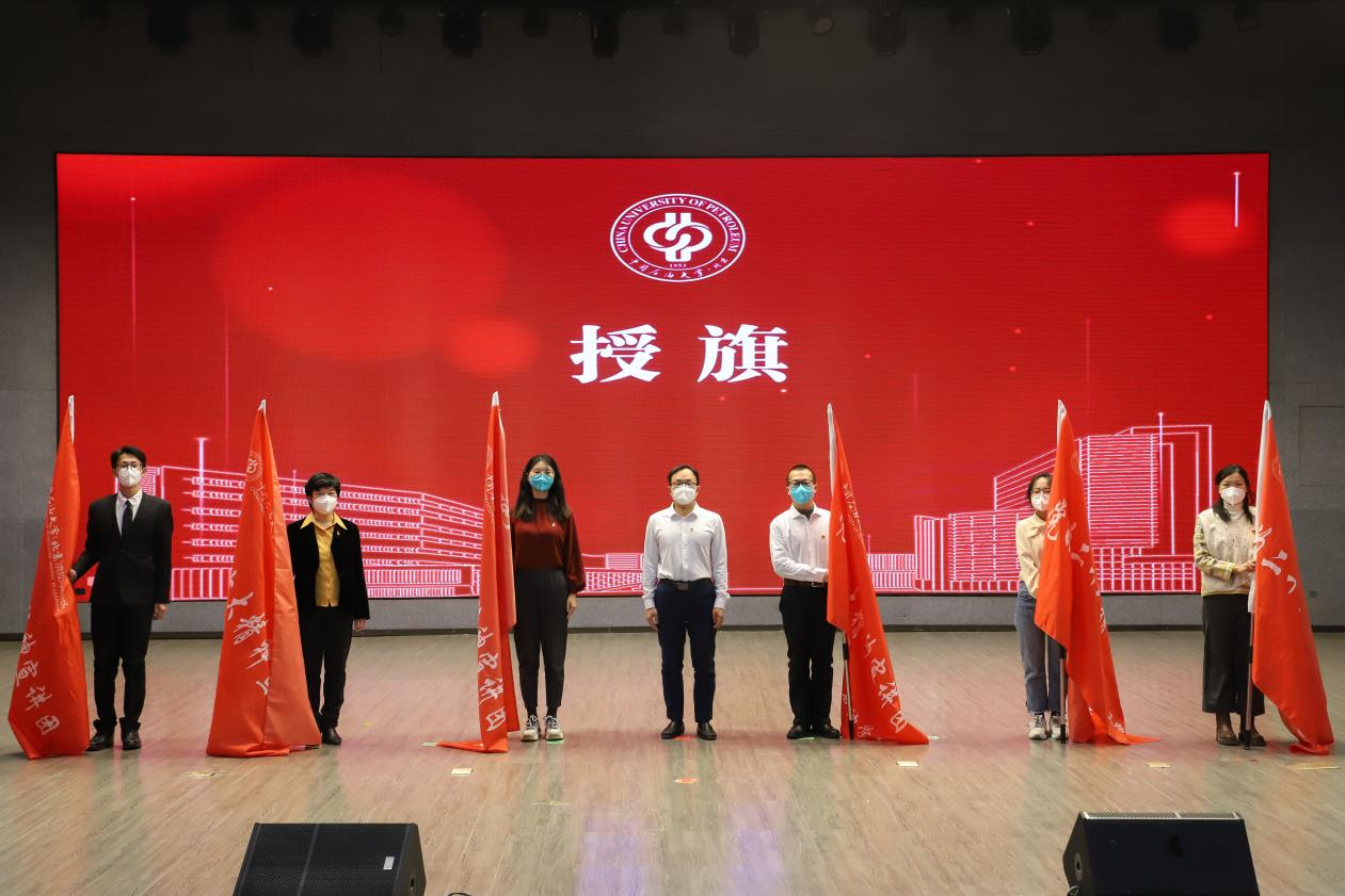 劉堅(jiān)宣讀了校區(qū)黨的二十大精神宣講團(tuán)及各分團(tuán)成員名單,并為各宣講團(tuán)代表授旗。