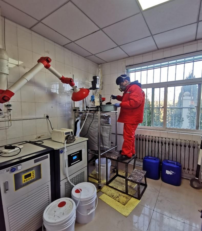 張百川在中國石化石油工程技術研究院有限公司開展專業實踐研究,由校內導師賈文峰副研究員和企業導師楊小華正高級工程師共同指導,入選中國石化集團公司科技部“頁巖油氣高性能水基鉆井液研究與應用”重點項目團隊。他長期深入鉆井平臺和生產一線實踐,面向深井鉆探常用的高密度鉆井液性能優化問題,研發了一種天然材料類鉆井液降濾失劑,較市售同類降濾失劑產品具有成本更低、降濾失效果更好、黏度更低、更為環保等優良特性,尤其是深部地層的高溫高壓高鹽條件下,仍具較好的降濾失效果。該成果完成了中試放大實驗5組,完成中試生產3釜,產出液體產品共6.3t。
