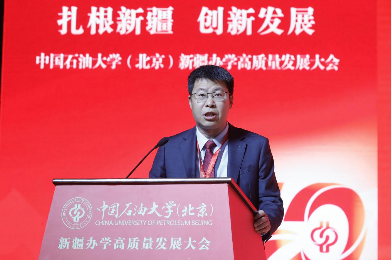 教育部思想政治工作司副司長龐謙在致辭中向長期以來關心、支持中國石油大學(北京)在新疆辦學的新疆維吾爾自治區及克拉瑪依市、在疆企業致以衷心的感謝,向各對口支援高校以及常年奮戰在邊疆教育一線的全體教職員工致以崇高的敬意。他指出,克拉瑪依校區的發展,是新時代高等教育蓬勃發展的生動縮影,也是教育服務國家戰略的典范實踐。他希望學校堅持立德樹人,在培養時代新人上展現新作為;堅持服務需求,在服務高質量發展上實現新突破;建強師資隊伍,在夯實發展基礎上探索新路徑;堅持深化改革,在部區共建、對口支援長效機制等框架內主動作為,在激發辦學活力上塑造新優勢。