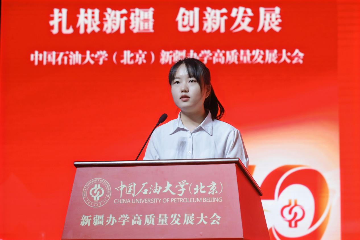 留疆畢業生代表、克拉瑪依校區2020屆畢業生阮思雅分享了自己扎根新疆油田一線的成長歷程,表示將不負母校厚植于心的家國情懷,在建設美麗新疆的征程中書寫新時代中石大人的精彩篇章。