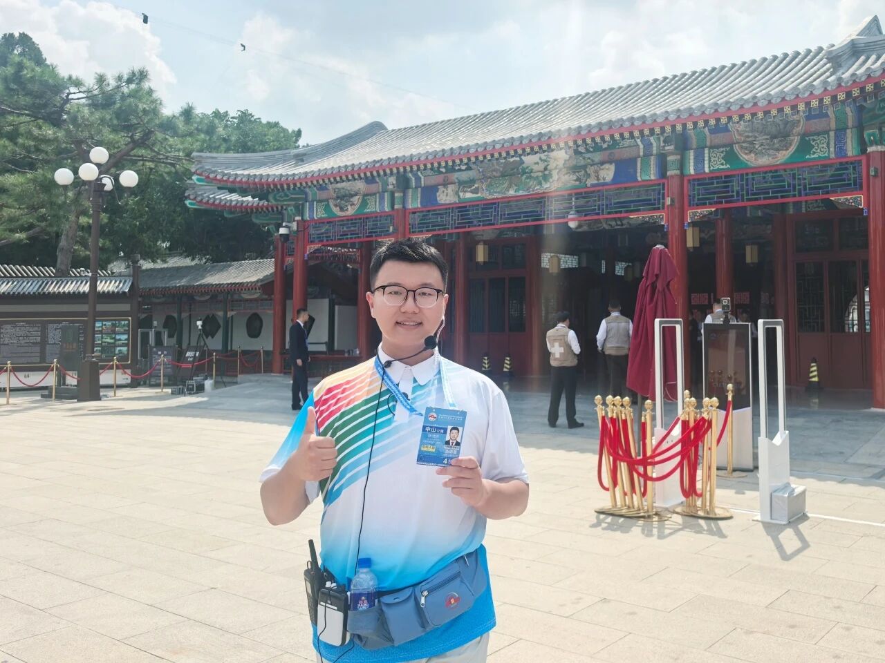 志愿者代表李茂粟表示,2019年,在長安街上匯入國慶70周年群眾游行的洪流,在“艱苦奮斗”方陣中用腳步丈量祖國的輝煌變遷;2021年,在鳥巢與合唱團唱響《沒有共產(chǎn)黨就沒有新中國》,在歌聲里見證百年大黨的風(fēng)華正茂;2022年,在延慶冬奧村與外國友人共繪冰墩墩,用熱忱與堅守為世界展現(xiàn)中國的活力與包容。今天,再一次站在天安門廣場,當(dāng)激昂的旋律在廣場回蕩,歷史的厚重與當(dāng)下的榮光在心中交織,震撼與激動難以言表。四次參與,四次蛻變成長;四份經(jīng)歷,四重信念擔(dān)當(dāng)。鐫刻著不屈與擔(dān)當(dāng)?shù)目箲?zhàn)精神從未遠去,必將在我們一代又一代青年的接續(xù)奮斗中薪火永續(xù)、光耀千秋!
