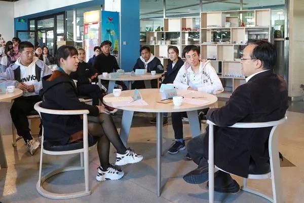 “校長下午茶”活動中,張來斌與同學們一起邊喝茶邊促膝長談